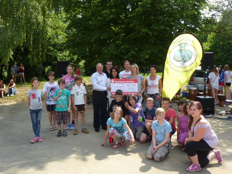 Die Dieter und Bettina Wulkow Stiftung hat am 13.06.2014 im Rahmen des Sommerfestes der Gesamtschule Schwingbach, Rechtenbach an die Vorsitzende des gleichnamigen Fördervereins, Frau Angela Kozian, eine Spende in Höhe von € 1.000,-- übergeben. Die Spende soll insbesondere zur Förderung von Schul-, und